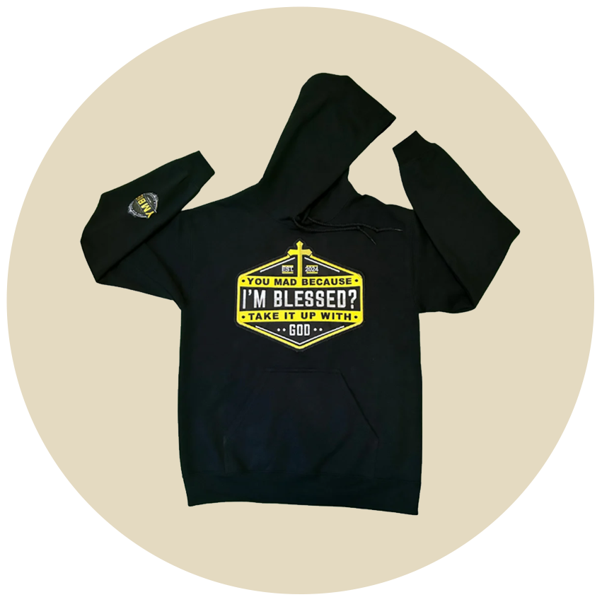 ““I’m obsessed with my YMBIB hoodie! The quality is top-tier — thick, soft, and feels like it’s made to last. I love that the patch design actually means something; it’s not just another logo. Every time I wear it, somebody stops me to ask what it stands for, and it always sparks a positive convo. It makes me feel confident and covered — like I’m walking with purpose and style.””